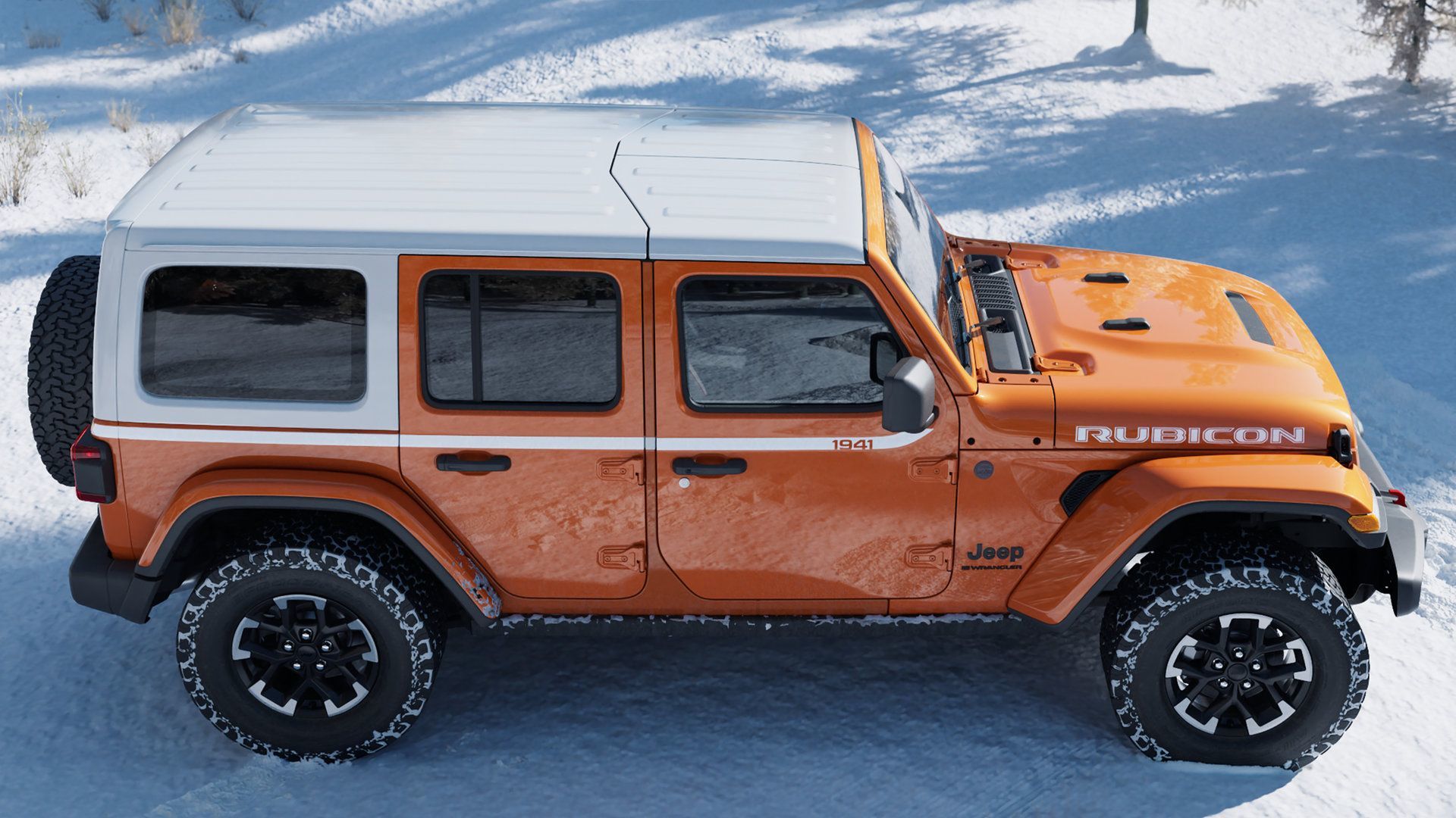Les détails incluent des décalques latérales « 1941 » en blanc éclatant sur les versions Sahara et Rubicon, ainsi qu'une décalque de capot blanc sur la Rubicon. Pour ceux qui recherchent encore plus de polyvalence, le toit électrique Sky One-Touch est offert en option avec accent blanc éclatant.
